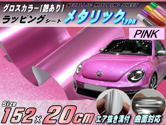 メタリックシート (幅152cm×20cm) ピンク 【宅急便 送料無料】 桃色 艶あり ツヤ有り メタル調ラッピングフィルム シート ステッカー 3D曲面対応カスタム グロスカラー STiKA ステカsv-8 sv-12 sv-15クラフトロボ シルエットカメオ対応 カッティング 製作 内装 外装