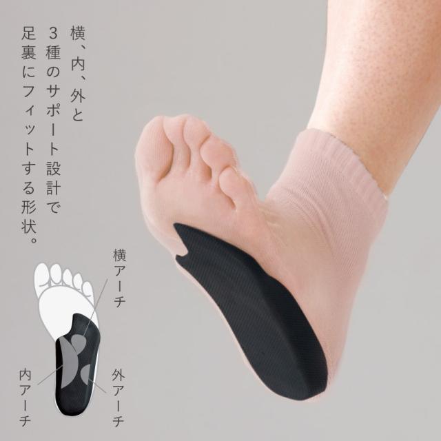 横、内、外と3種のサポート設計で足裏にぴったりフィットする形状。