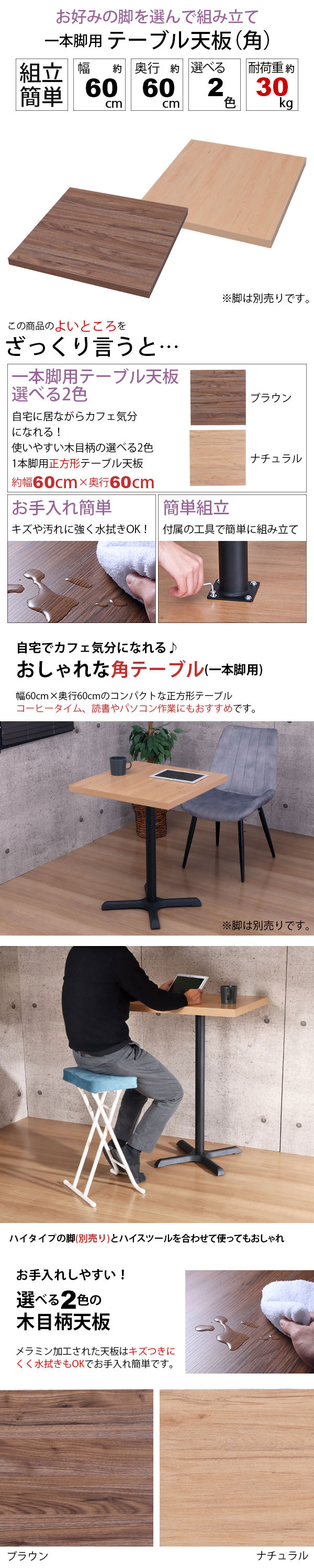 テーブル 天板 パーツ 幅60cm(角)の紹介