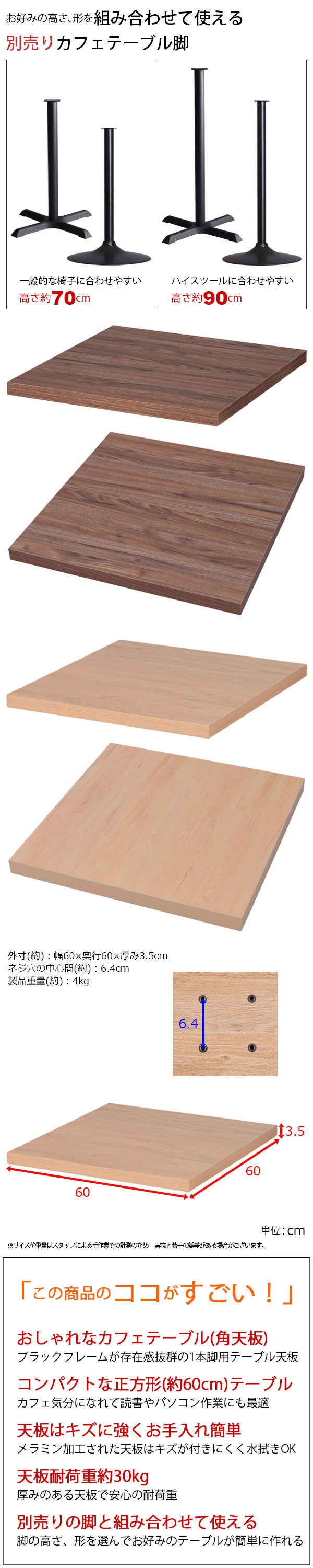 家具通販 インテリア通販>テーブル通販>DIYテーブル 天板 脚 パーツ通販>テーブル天板のみ>カフェテーブル、ディスプレイテーブル>正方形>幅・奥行き60cm