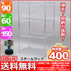 スチールラック4段は、幅150cm 奥行き45cm 高さ150cmの多目的ラックです。