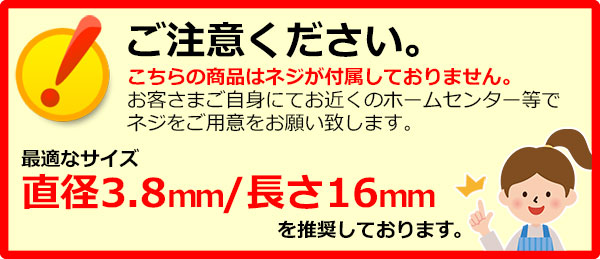 推奨ネジサイズ:直径3.8mm 長さ16mm (皿頭木ネジ)