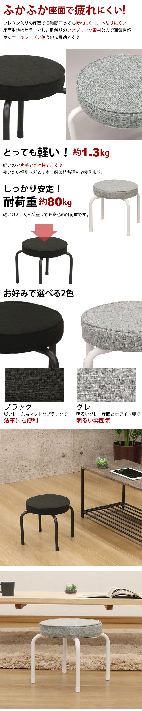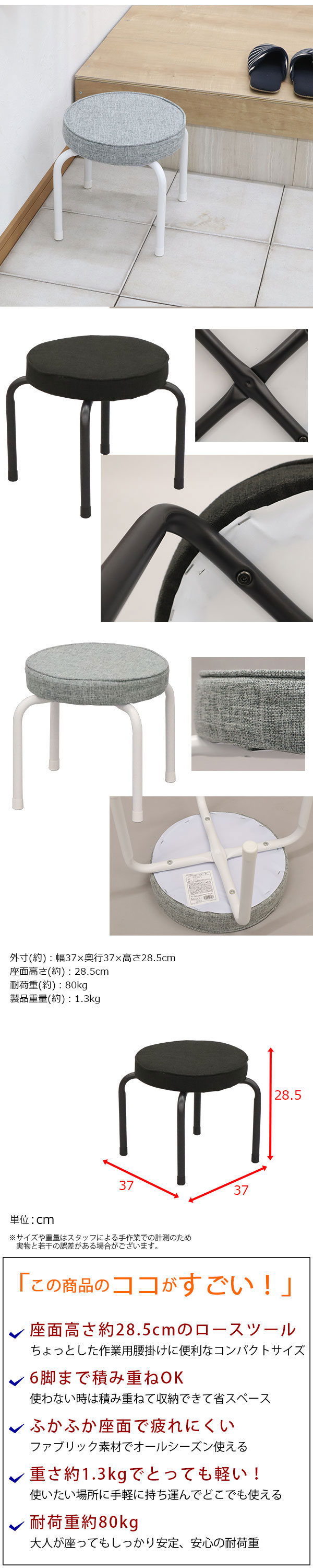 座面が低い椅子 背もたれなし 丸椅子 スツール 幅37cm 奥行37cm 高さ28.5cm 軽量 頑丈 耐荷重80kg 玄関椅子 来客用 法事用 疲れにくい クッション性 ローチェア ロータイプ椅子 スタッキングチェア パイプ椅子 おしゃれ シンプル ブラック 黒 グレー 完成品 AHSL