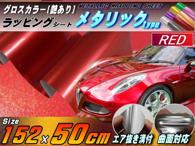 メタリックシート (幅152cm×50cm) 赤 レッド 艶あり ツヤ有り メタル調ラッピングフィルム シート ステッカー 3D曲面対応カスタム グロスカラー STiKA ステカsv-8 sv-12 sv-15クラフトロボ シルエットカメオ対応 カッティング 製作 内装 外装 車用 バイク