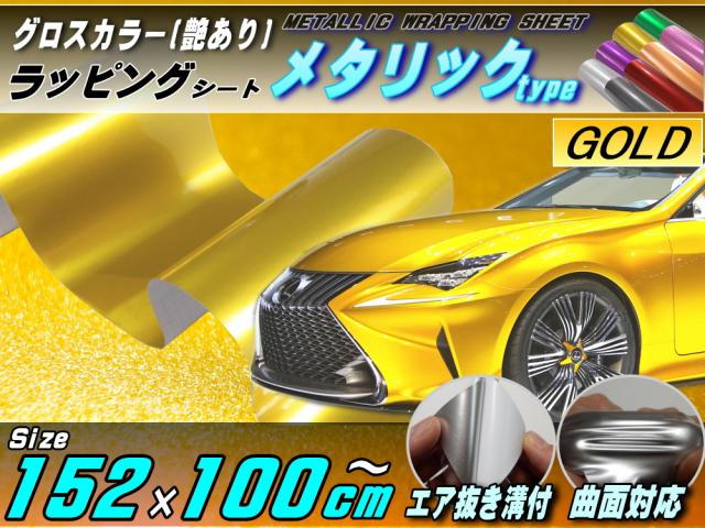 メタリックシート (大) 金 幅152cm×100cm 長さ1m 延長可能 ゴールド 艶あり ツヤ有り メタル調ラッピングフィルム シート ステッカー 3D曲面対応カスタム グロスカラー STiKA ステカsv-8 sv-12 sv-15クラフトロボ シルエットカメオ対応 カッティング 製作 内装 外装
