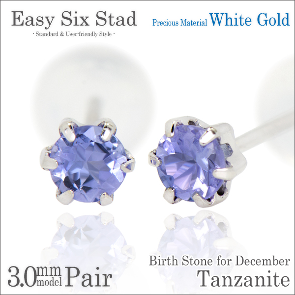 タンザナイト ピアス 送料無料 K10 ホワイトゴールド 3mm 薄型6本爪 スタッド 両耳ペア