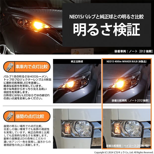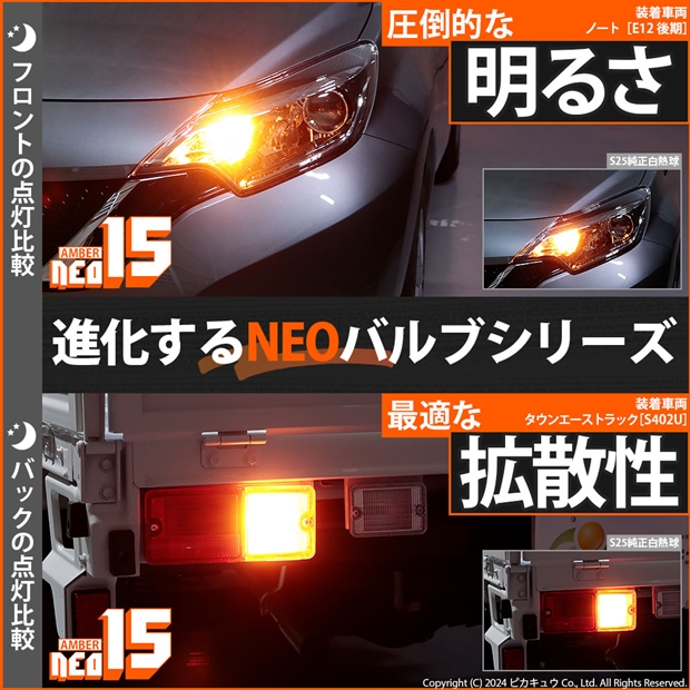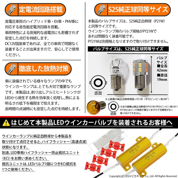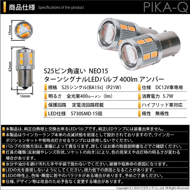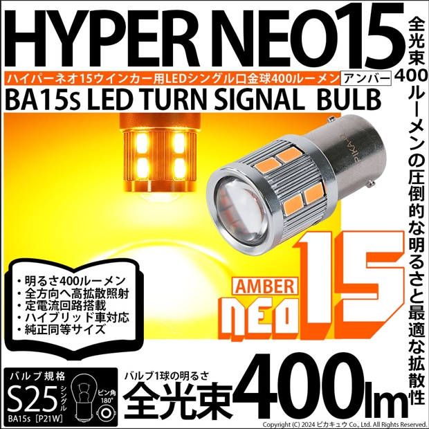 ピカキュウ,LED専門店,LEDバルブ,LED,SMD,S25s,BA15s,シングル,ターンシグナルランプ,ウインカーランプ,DC12V車,NEO15,アンバー,全光束400lm,定電流回路搭載,ハイブリッド車対応