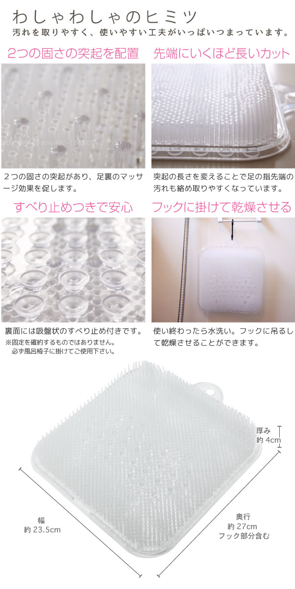 足元で泡立てて足裏・指の間をキレイにするフットバスマットです。