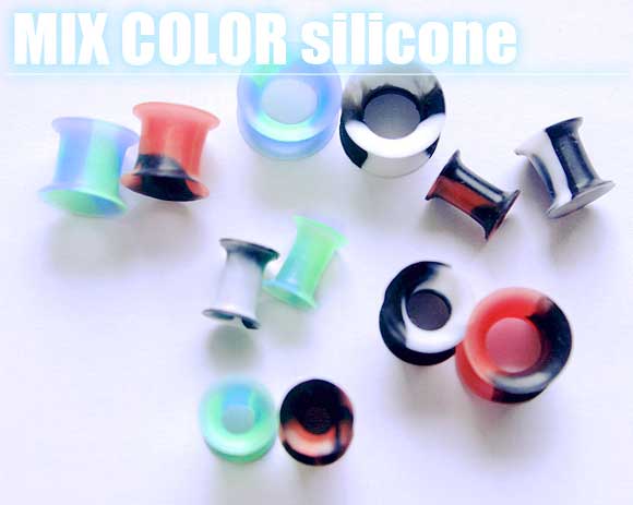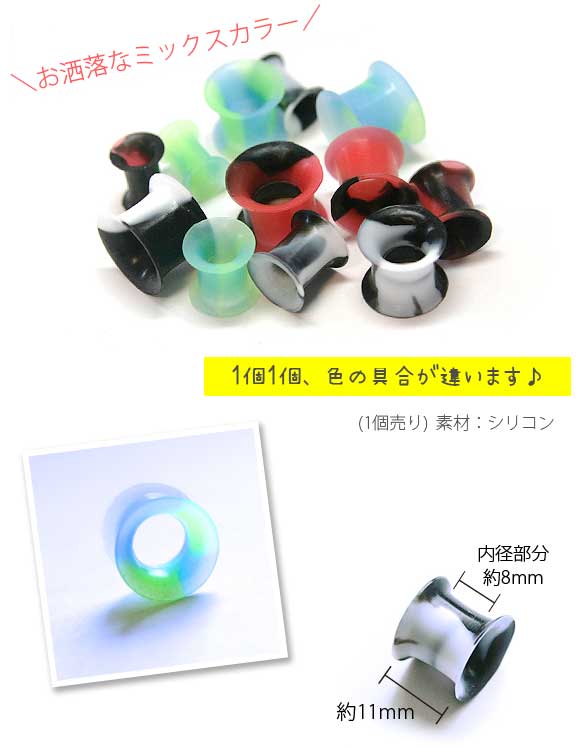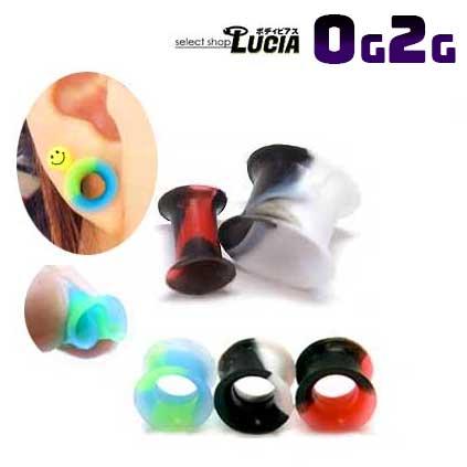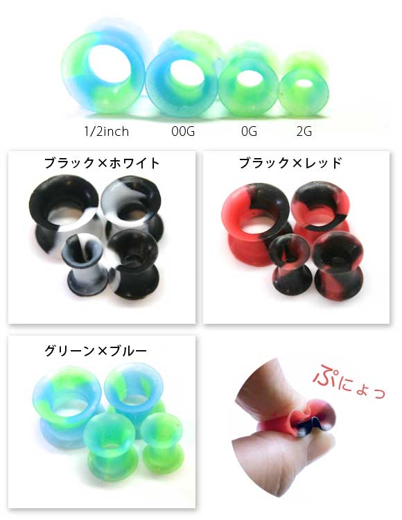 本日P2倍 2G 0G ピアス ボディピアス シリコン ミックスカラー ダブルフレアアイレット プラグ 拡張