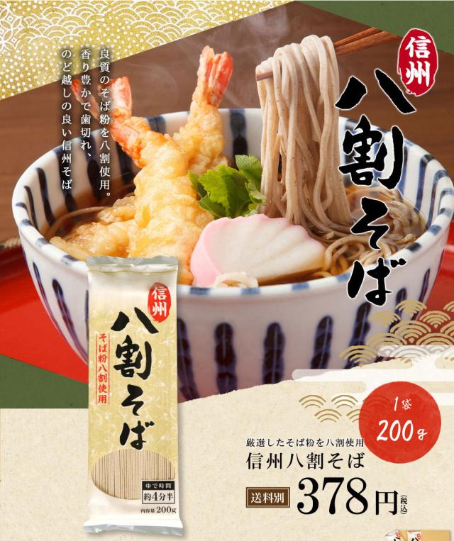 信州八割そば 200g(そば粉八割使用)ゆで時間約4分半 信州そば 八割 そば 蕎麦 めん類 麺類 年越しそば 年越し蕎麦