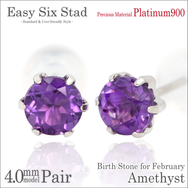 アメジスト ピアス プラチナ 送料無料 Pt900 4mm 薄型6本爪 スタッド 両耳ペア