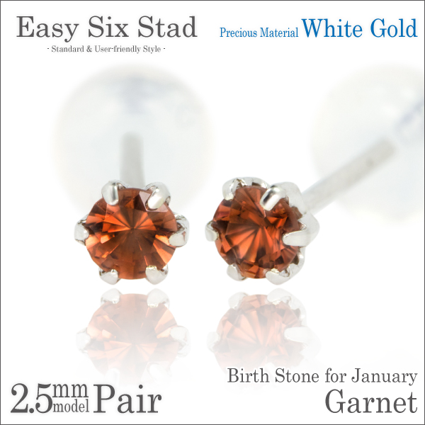 ガーネット ピアス 送料無料 K10 ホワイトゴールド 2.5mm 薄型6本爪 スタッド 両耳ペア