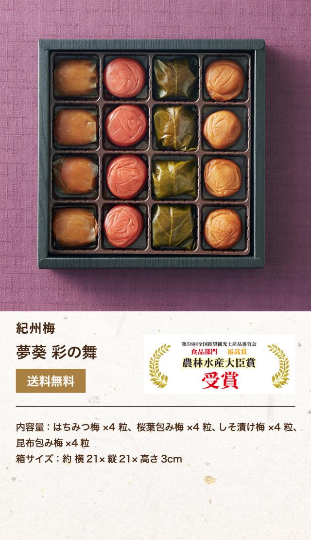 送料無料 紀州梅 夢葵 彩の舞 16粒 メーカー直送 のし・包装紙・メッセージカード不可 誕生日プレゼント 入学内祝い ホワイトデー お返し ギフト