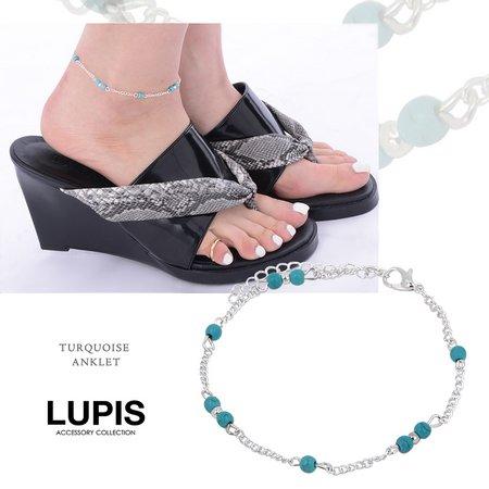 アンクレット レディース ターコイズ ビーズ ステーションチェーン シルバー ポイント消化 LUPIS ルピス