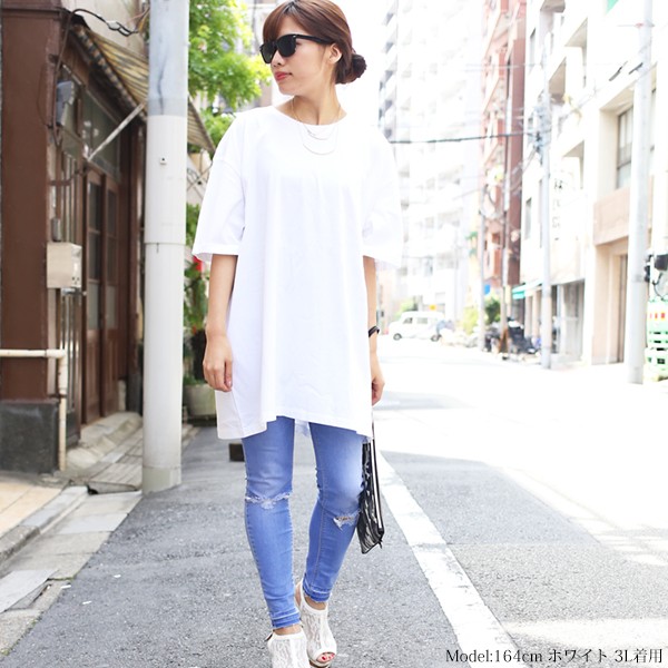 大きいサイズ レディース トップス tシャツ 半袖 【メール便】BIG 無地 ビッグサイズ オーバーサイズ メンズ 4L 3L LL L 夏服 秋新作 SALE 韓国ファッション 綿 コットン ユニセックス 黒 白 ブラック ホワイト