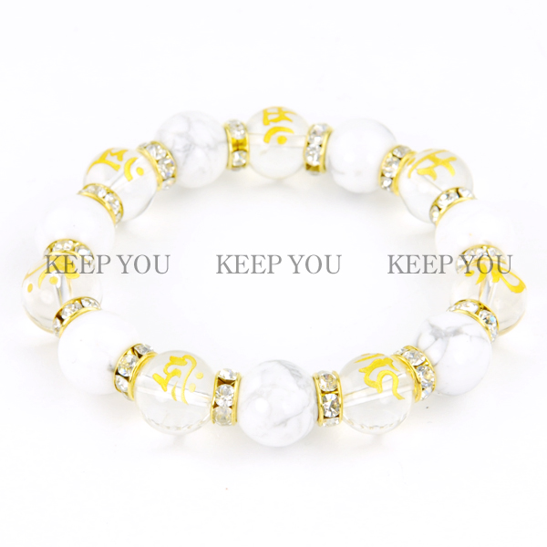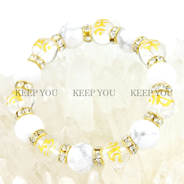 メール便 送料無料 パワーストーン ブレスレット 12mm玉 ホワイトバッファロー 水晶 平型ロンデル 梵字【天然石 パワーストーン アクセサリー】garry-0021 ┃