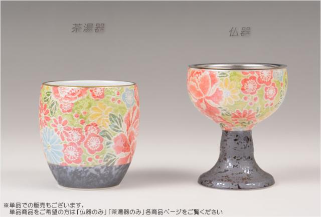 国産 有田焼高級仏具【四季めぐり 四季友禅 仏器・茶湯器セット】仏壇・仏具 仏飯器 ご飯 湯飲み 仏飯 現代調仏具 送料無料