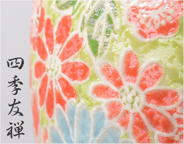 透明感のある白磁に繊細で華やかな着彩が特徴的