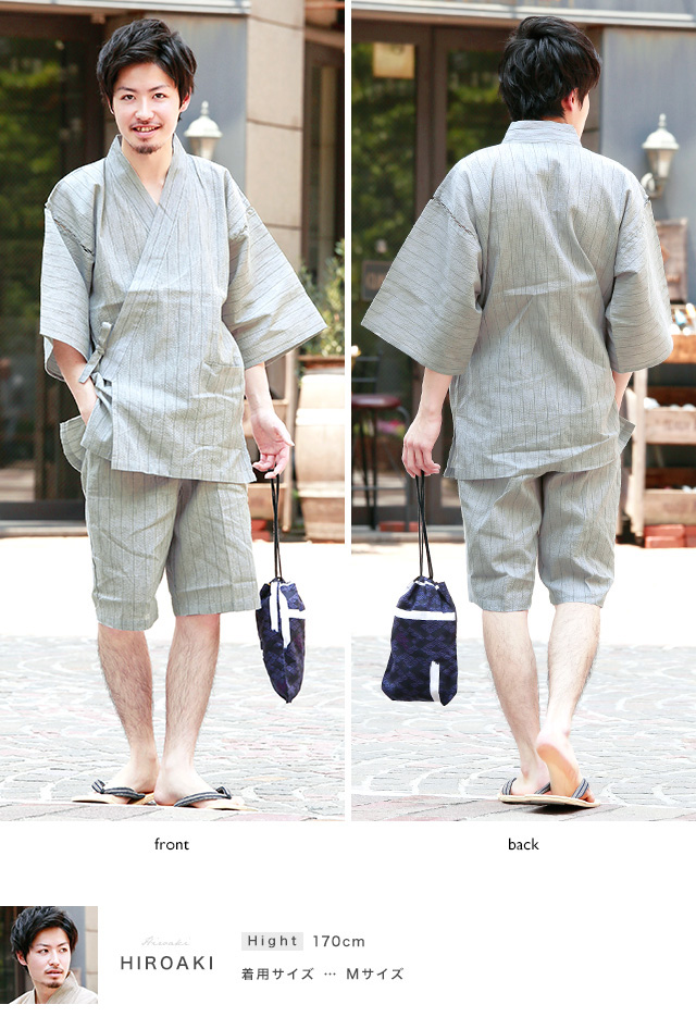 夏のカジュアルな装いにオススメな、「ボヌールセゾン」のメンズ甚平です。