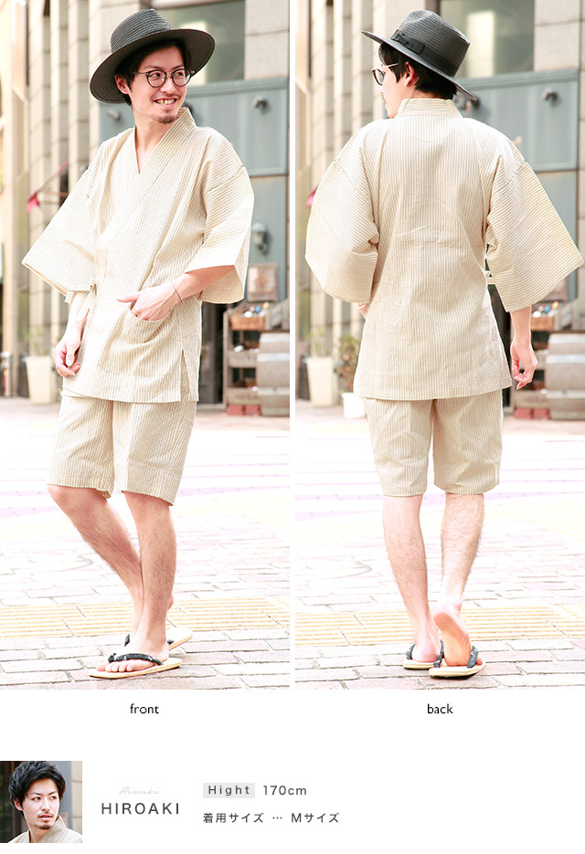 夏のカジュアルな装いにオススメな、「ボヌールセゾン」のメンズ甚平です。