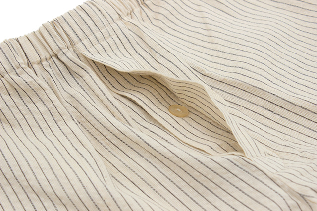 落ち着いた色合いの生地に、ストライプが描かれたシンプルなデザインです。