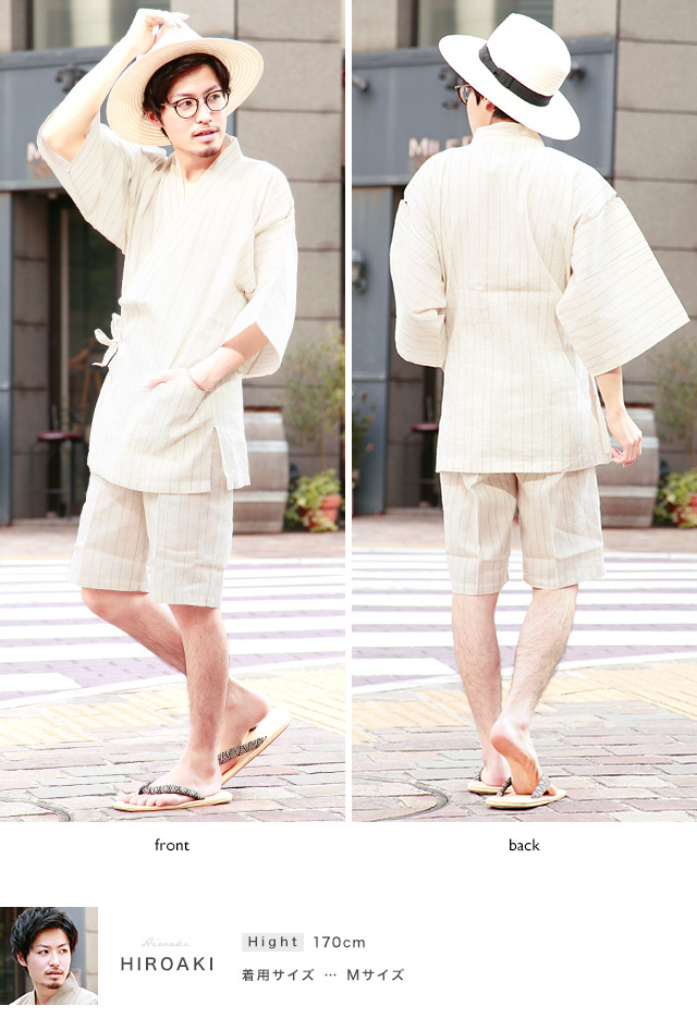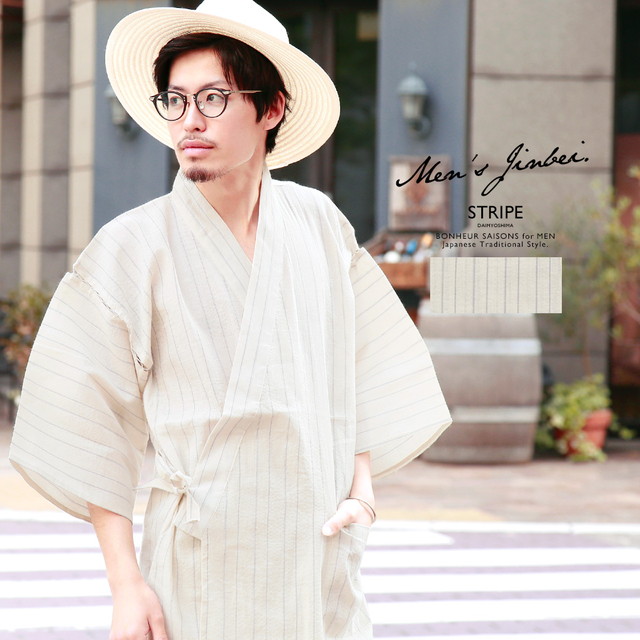 夏のカジュアルな装いにオススメな、「ボヌールセゾン」のメンズ甚平です。