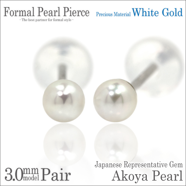 送料無料 K14ホワイトゴールド 本真珠 アコヤパール 3mm珠 フォーマルスタッドピアス 両耳ペア