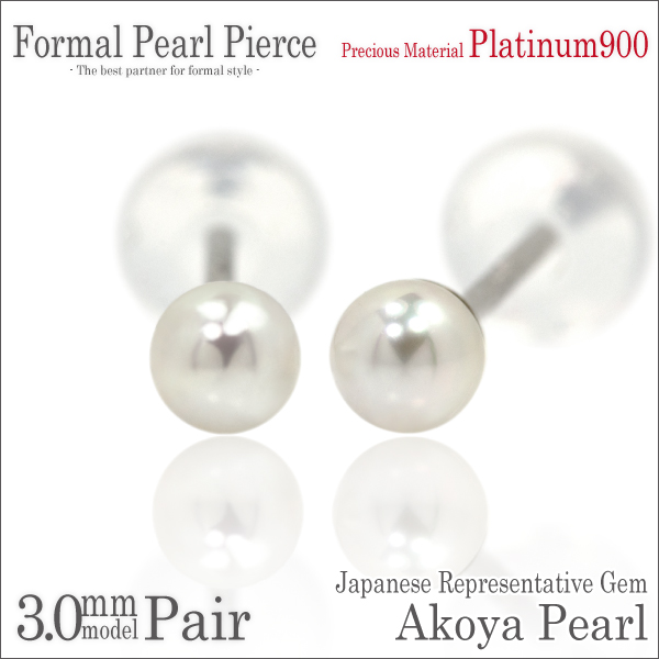 送料無料 Pt900プラチナ 本真珠 アコヤパール 3mm珠 フォーマルスタッドピアス 両耳ペア
