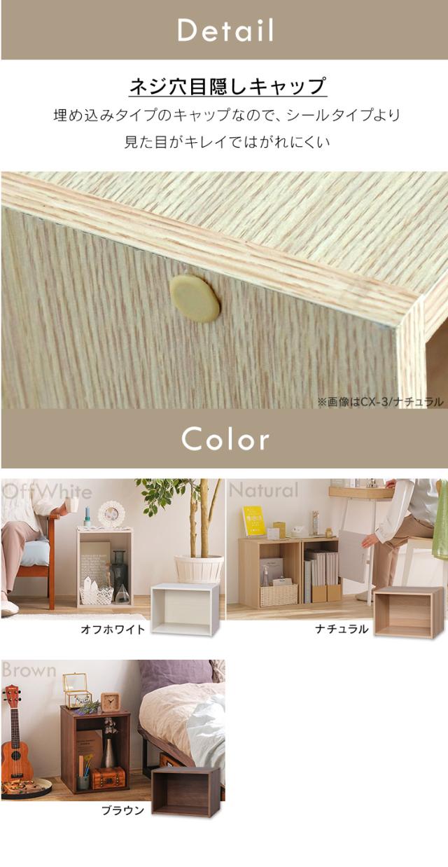 強度・耐荷重(全体約30kg)に優れ、ネジや釘も使用可能なカラーボックス。