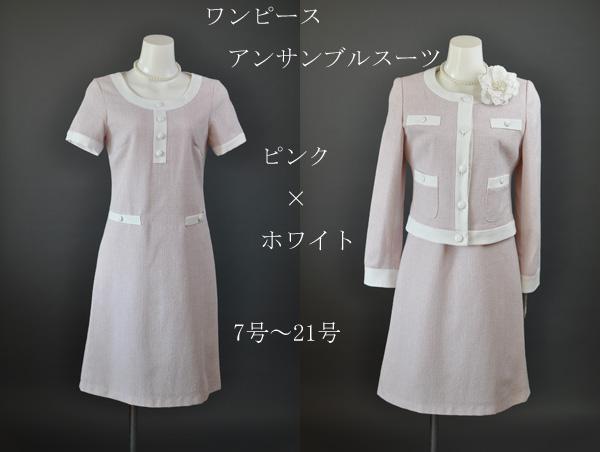 13号 ワンピースアンサンブルスーツ ピンク×ホワイト 卒業式 入学式 ママスーツ 302