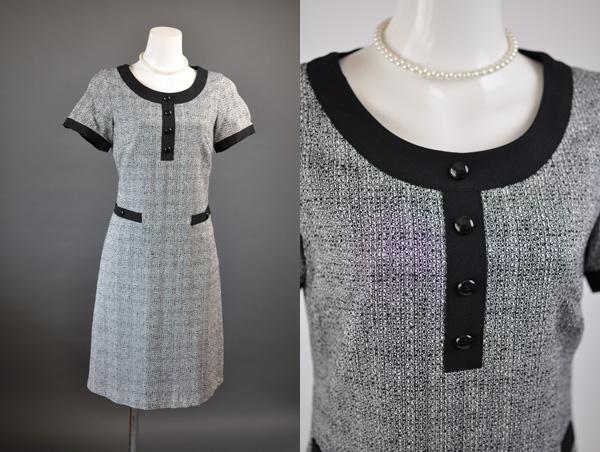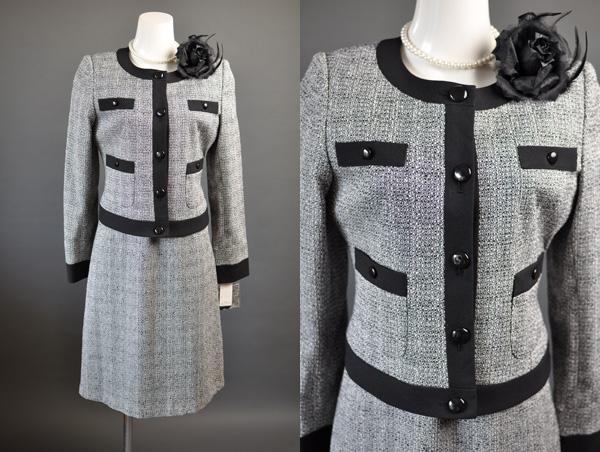 首周りのすっきりしたジャケットはパイピングが心地よいアクセントになっています。