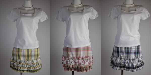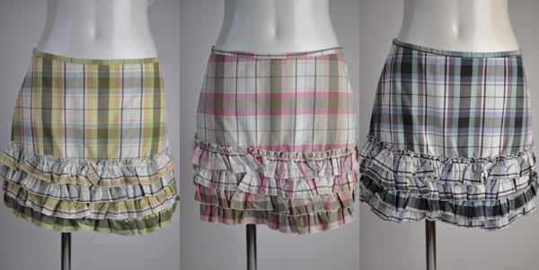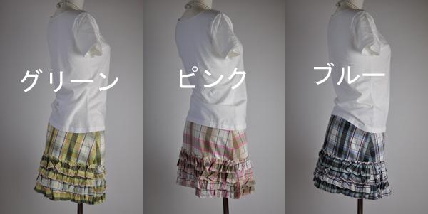 チェック×グリーン、チェック×ピンク、チェック×ブルー ティアードスカート 腰スカート ミニスカート 307【ゆうパケット送料370円】