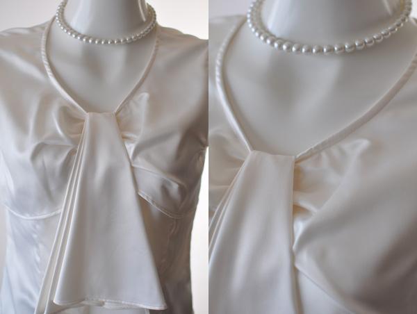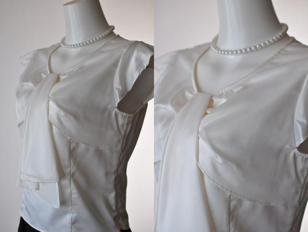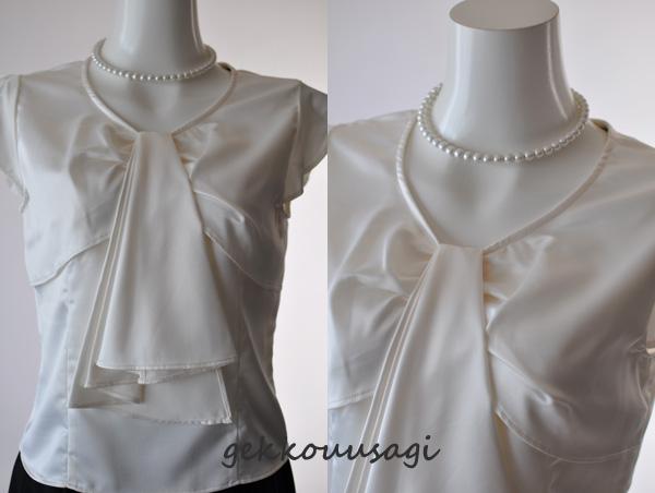 小さいサイズ7号/9号/11号/13号/15号大きいサイズ◇プルオーバー ブラウス リボンタイ付 光沢感 白 ゆうパケット 273