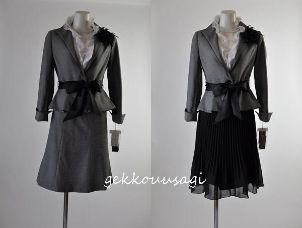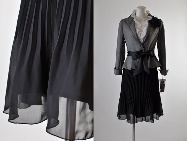 ジャケット、スカート、プリーツスカートの3点スーツになります。