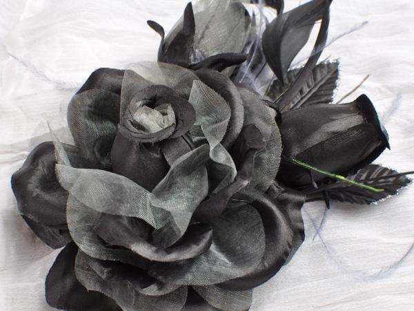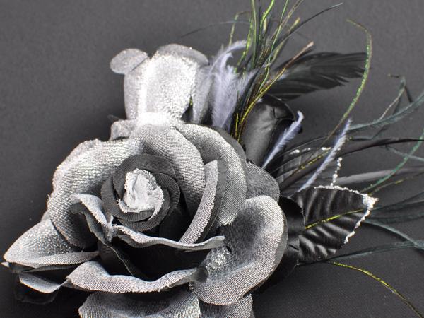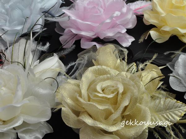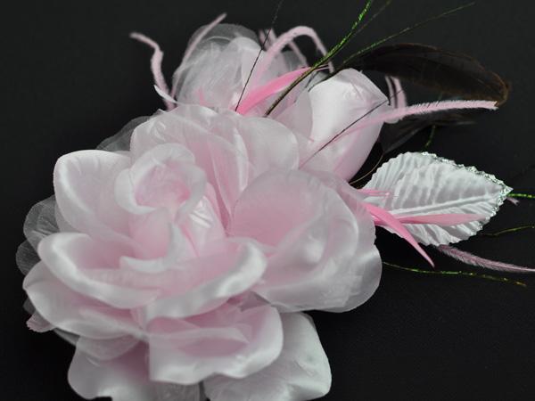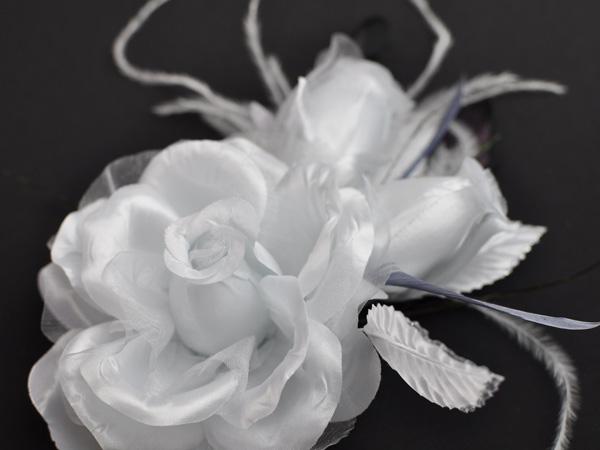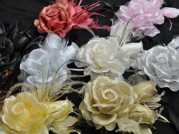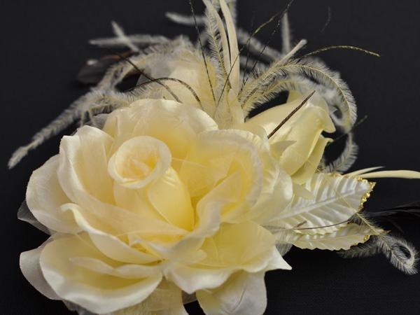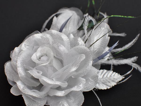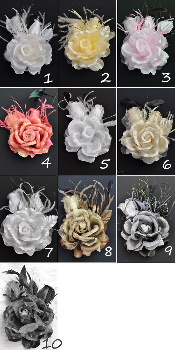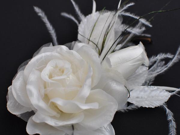 【同梱可能】華やかローズと蕾がかわいい羽つきコサージュ 白・黒・赤・ピンクなど色とりどりの10色 結婚式 二次会 卒業式
