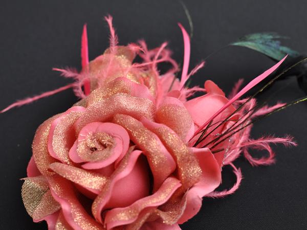 通常のコサージュの2〜3倍の大きさで存在感・ボリュームがあり価値があるコサージュです。
