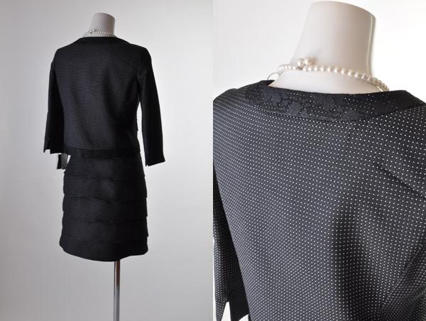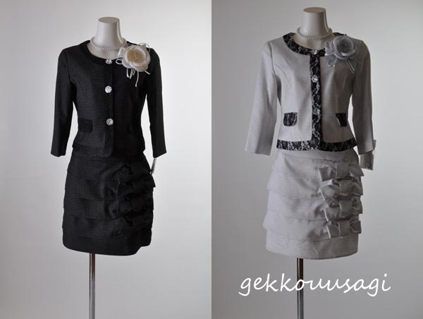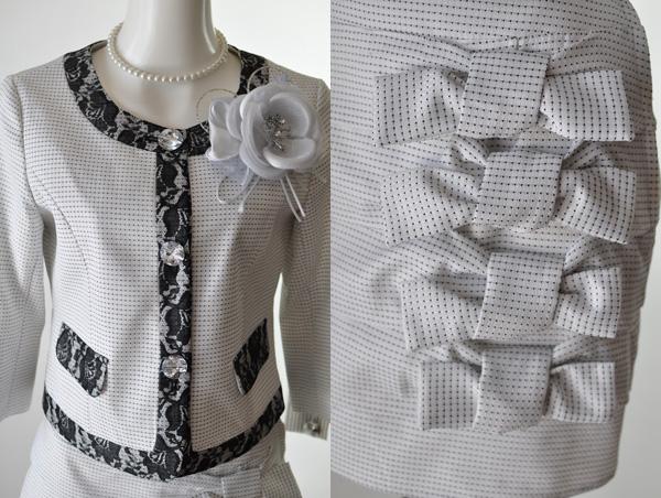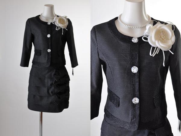【送料無料】9号/15号/17号 七分袖ノーカラージャケット&リボンがフェミニンなティアードスカートススーツ 250
