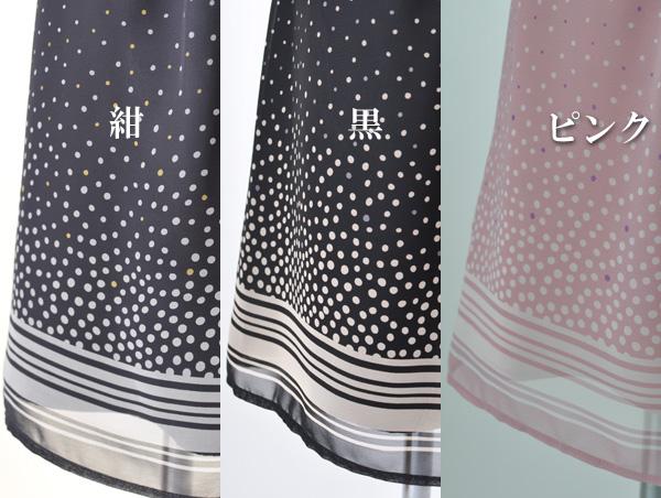 スカートはシフォン素材の水玉柄、裾ボーダー柄プリント入りスカート。後ろファスナー開き。ちょっぴり嬉しい後ろ両サイドゴム入りで、着心地も楽です。