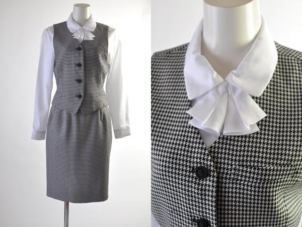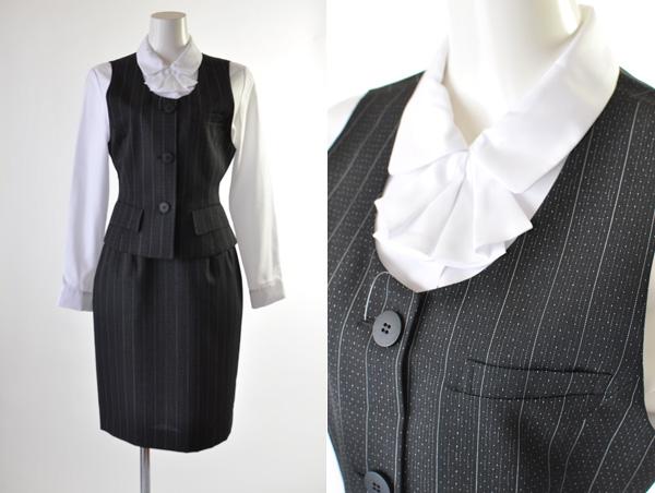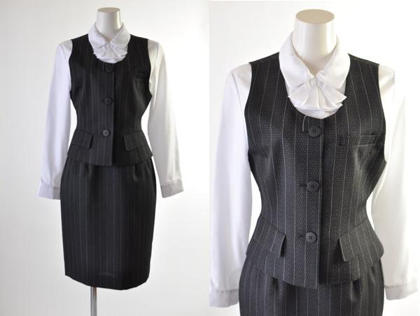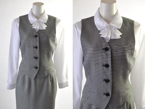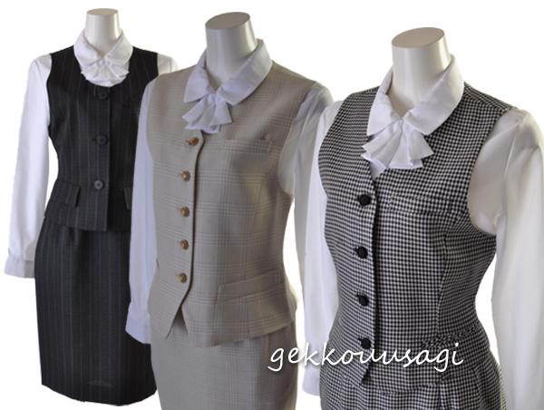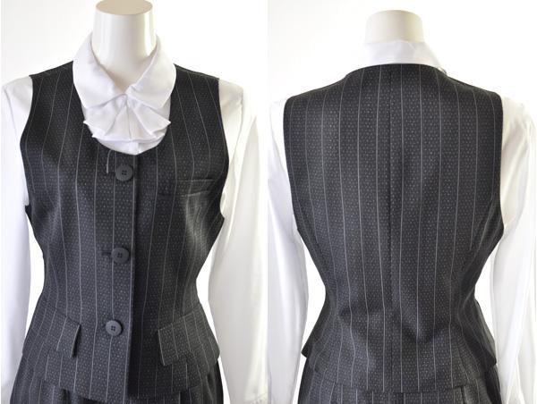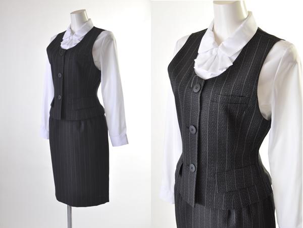 ベストスーツ セットアップ 事務服 制服 洗える 日本製 5号 7号 9号 11号 13号 ジャケット ベスト キュロット スカート 上下セット 2点セット 事務所 企業 法人 ユニフォーム ベスト 事務服 スカート ストライプ 千鳥【LS】A219-719-6/C297-397-6