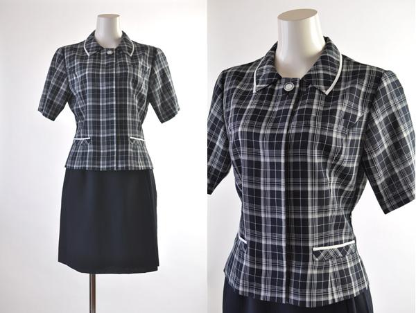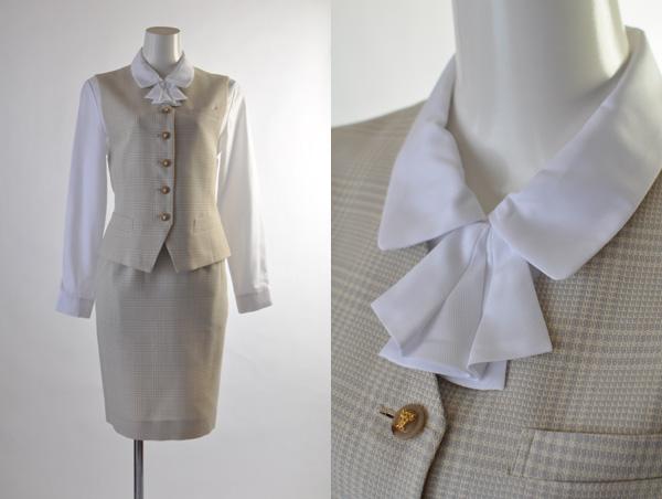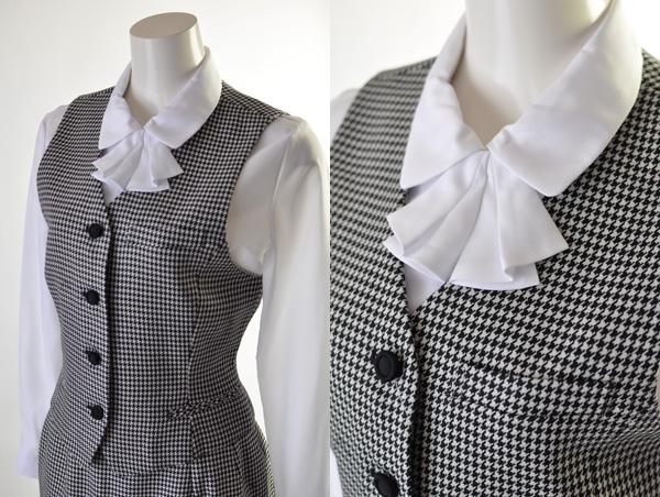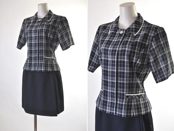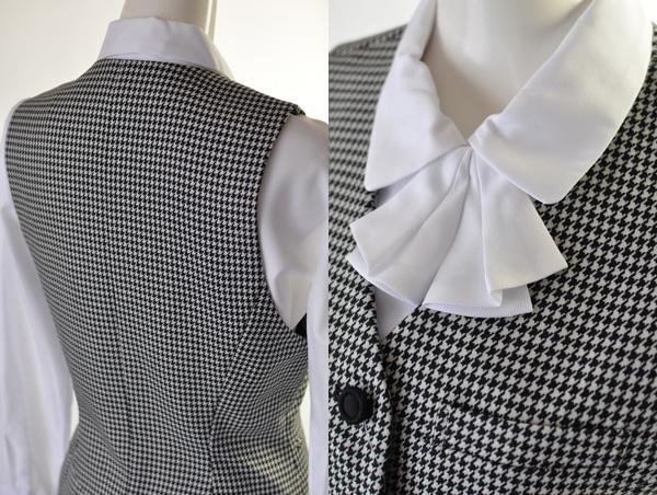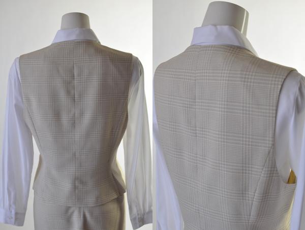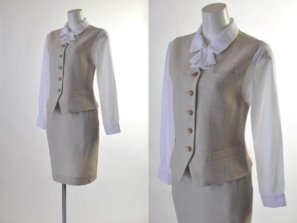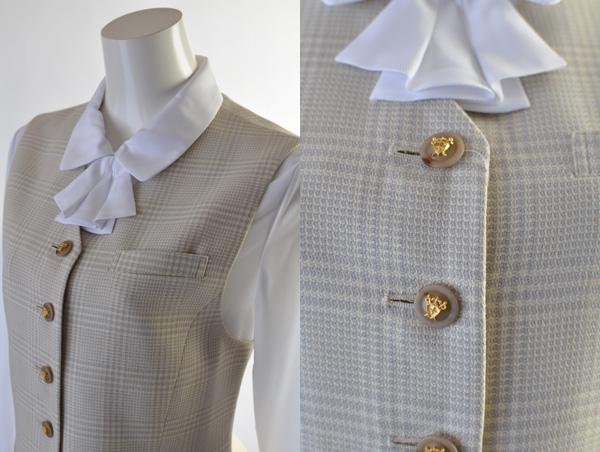 べスト、スカートとも裏地付きでオールシーズンOK。ご家庭で洗える商品です。