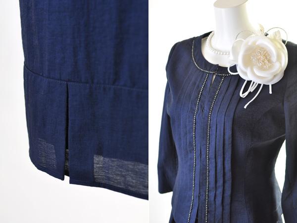 送料無料 15号 大きいサイズ 七分袖 ワンピーススーツ 裏地背抜き ジャケット サマースーツ 麻素材 紺色 茶色 ベージュ 304