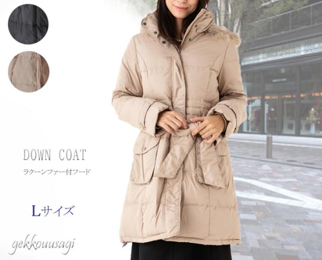 ダウンコート レディース M Lサイズ 美シルエット 防寒性 抜群 高品質 ダウンコート スナップボタン ファスナー 二重構造 ウエストリボン付 ダウンコート(au10) 【黒・キャメルベージュ】938