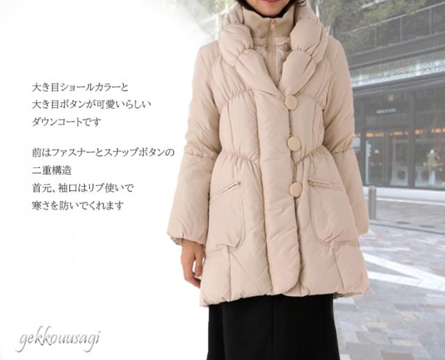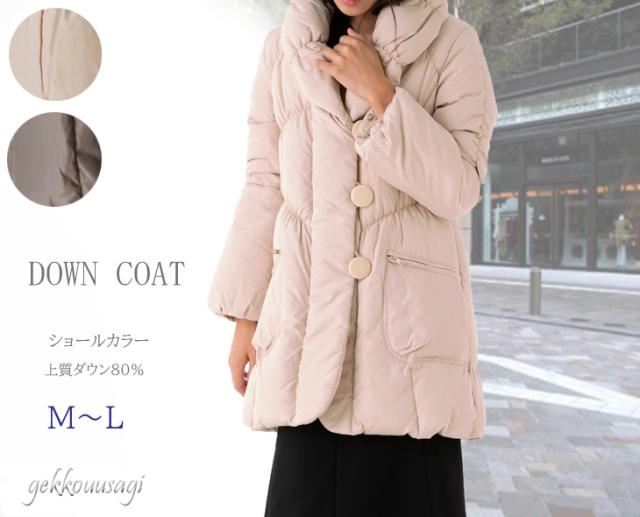 38(Mサイズ)/40(Lサイズ) ショールカラーAラインダ ウエストリボン付ダウンコート へちま襟ダウンコート 610