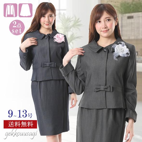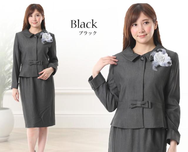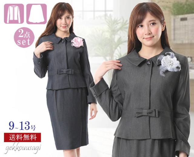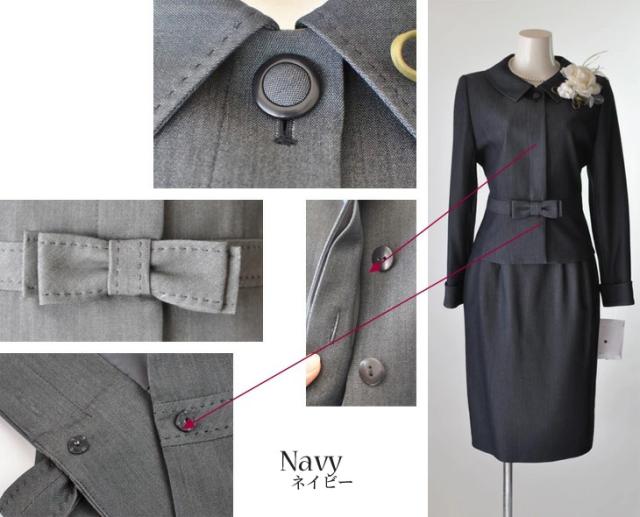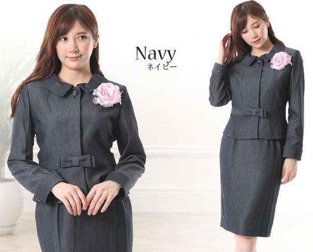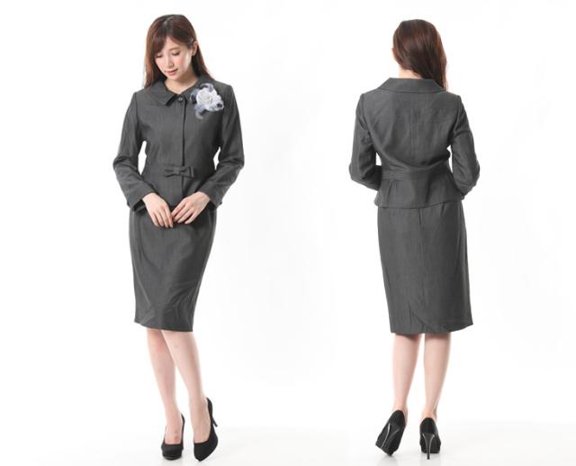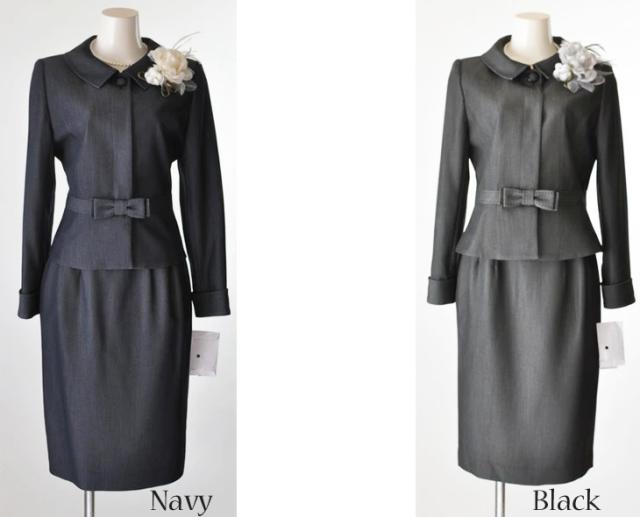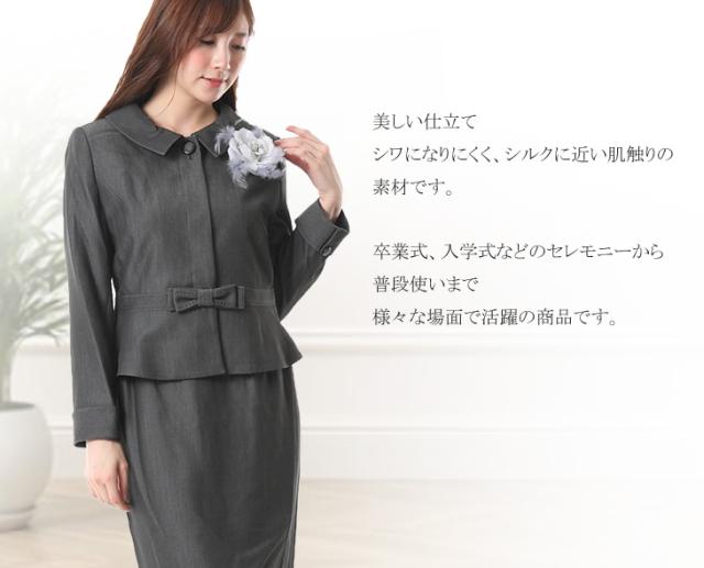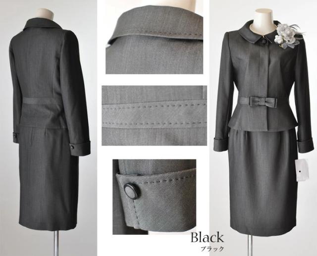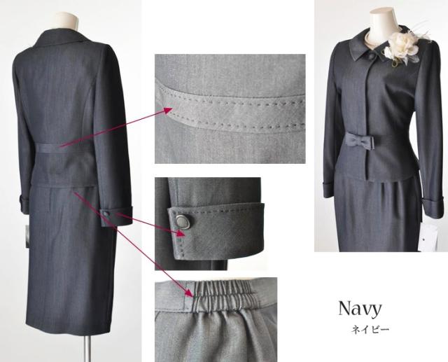 レディーススーツ 上質素材 美しい仕立てとシルエットのウエストリボン付スーツ ウエストゴム入りスカート 卒業式 スーツ 5347