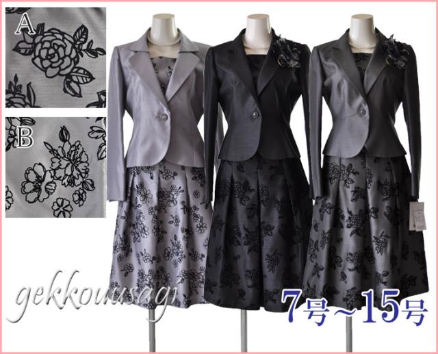 卒業式 入学式 結婚式 スーツ 9号 11号 13号 15号 シャンタン×薔薇フロッキーセレモニースーツ ママスーツ カラーフォーマル 5955A/5956B