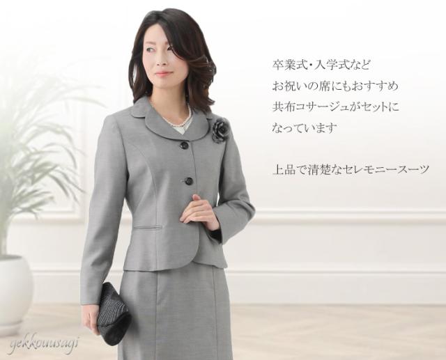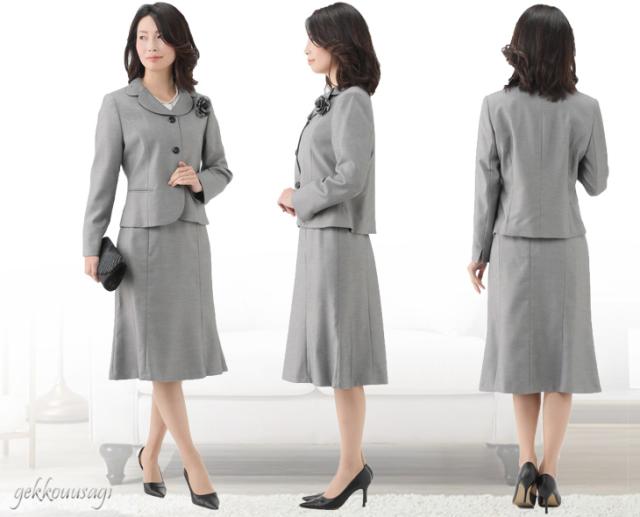 M、L、LLサイズのコサージュ付スカートスーツです。