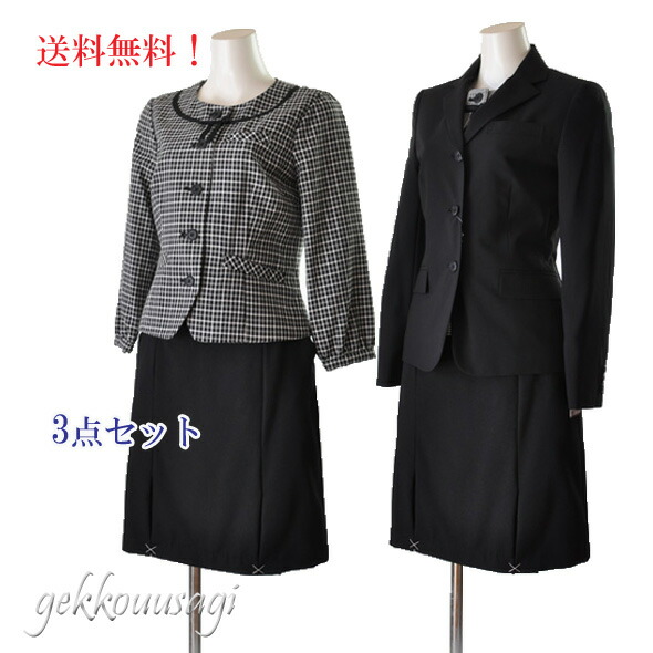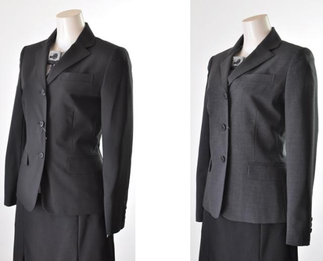 テーラードジャケット・洗濯機で洗える七分袖ジャケット・スカートの3点スーツです。