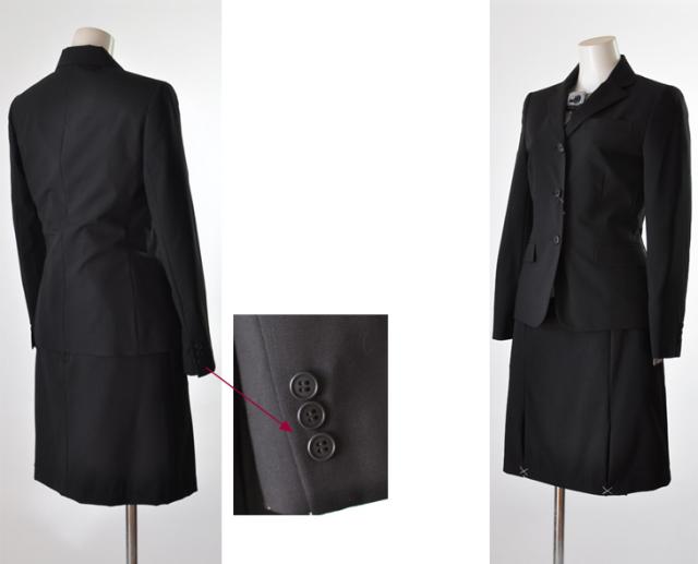 3つボタン。袖口3つ飾りボタン。
