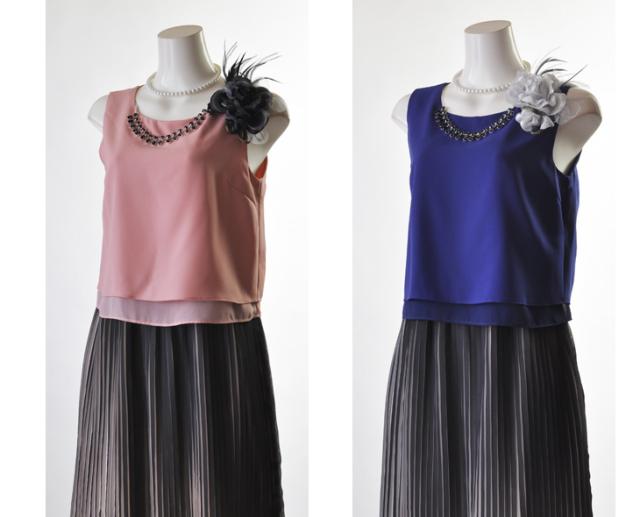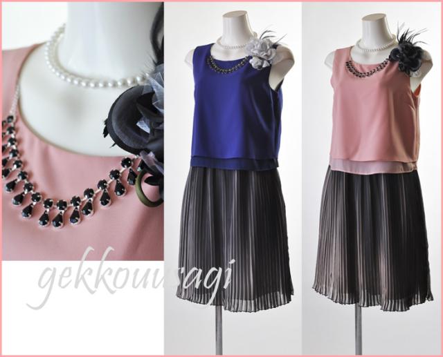 ドレス 結婚式 ノースリーブ 9号 Mサイズ アクセサリー付 オケージョンワンピース お呼ばれ かわいい きれいめ 結婚式 披露宴 謝恩会 ピンク ブルー 724623
