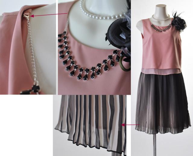 ネックレス、コサージュはイメージです。